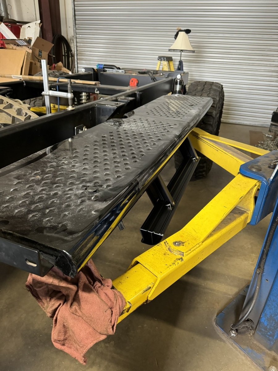 Aries power steps got custom mounts to tuck under the factory running boards and give some hope of getting in easily.